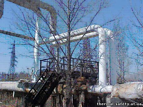 Трубопроводы котельной станции. Температура теплофикационной воды 150°С, температура на поверхности изоляции +40°С