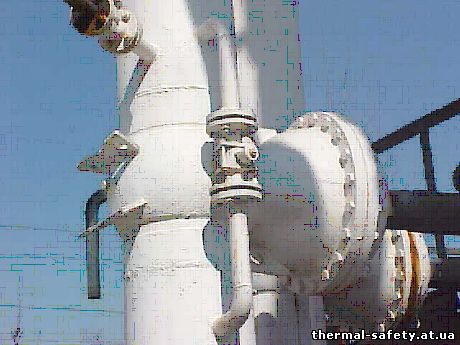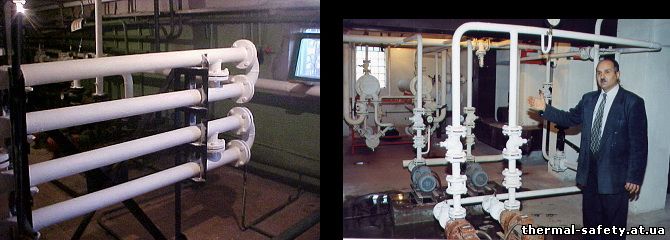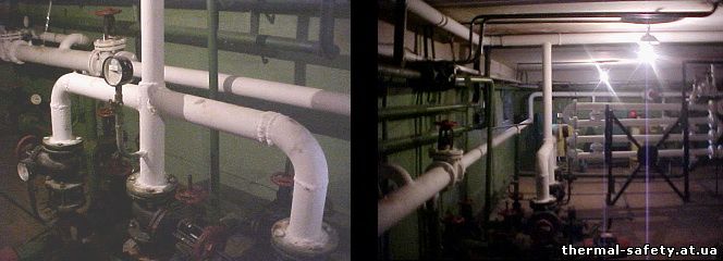 Трубопроводы и арматура теплового пункта (95-70°С). Температура на поверхности изоляции + 35°С.